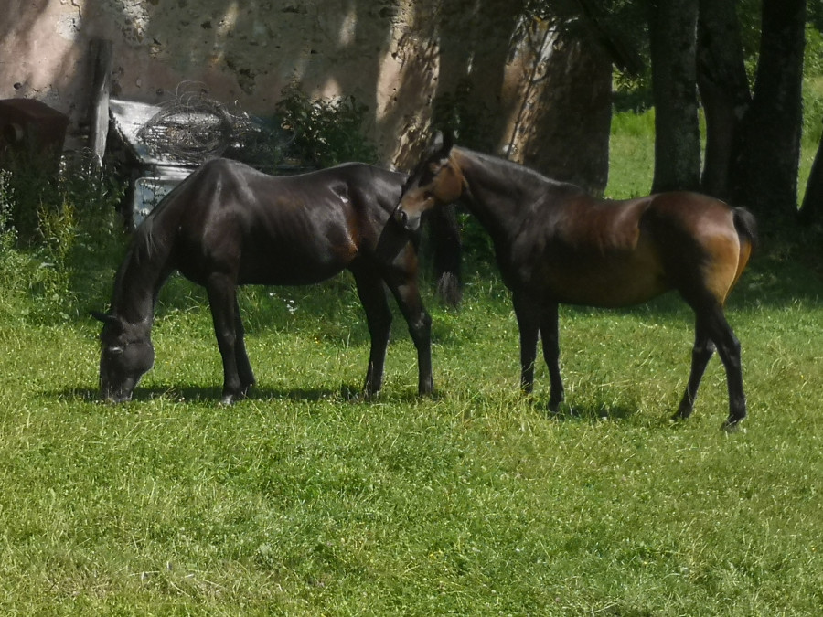 Bon j'attends,la propriétaire de la pâture a vu ma mère et lui a dit que Gucci était trop mauvais et que si elle ramenait ses poulains cet hivers ça n'allait pas le faire car il bloque l'entrée de l'abri... ( en attendant en ce moment il y a trois poulains et je les ai toujours vu dans l'abri quand il y était aussi...)