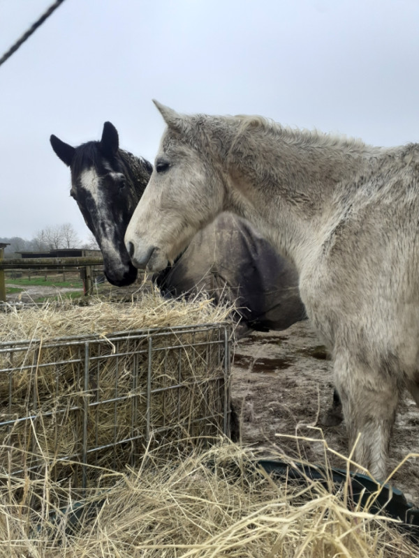 Avec la juju de ma mère, mais on ne peut pas les laisser ensemble car elle fait de la fourbure et Moon à besoin d'enrubanné.