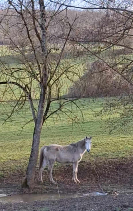 Mais Moon ayant commencé à perdre un peu de l'état , malgré que j'aille le nourrir il n'avait pas accès à l'abri et au foin. Du coup il est retourné dans son ancienne écurie , en extérieur.