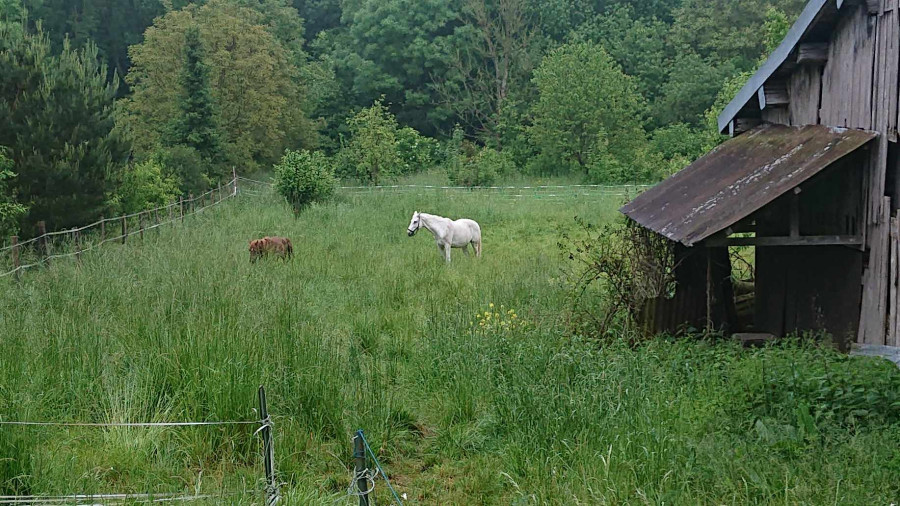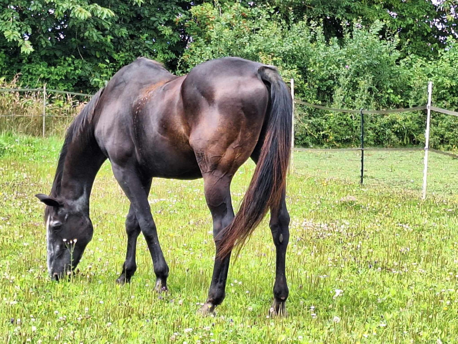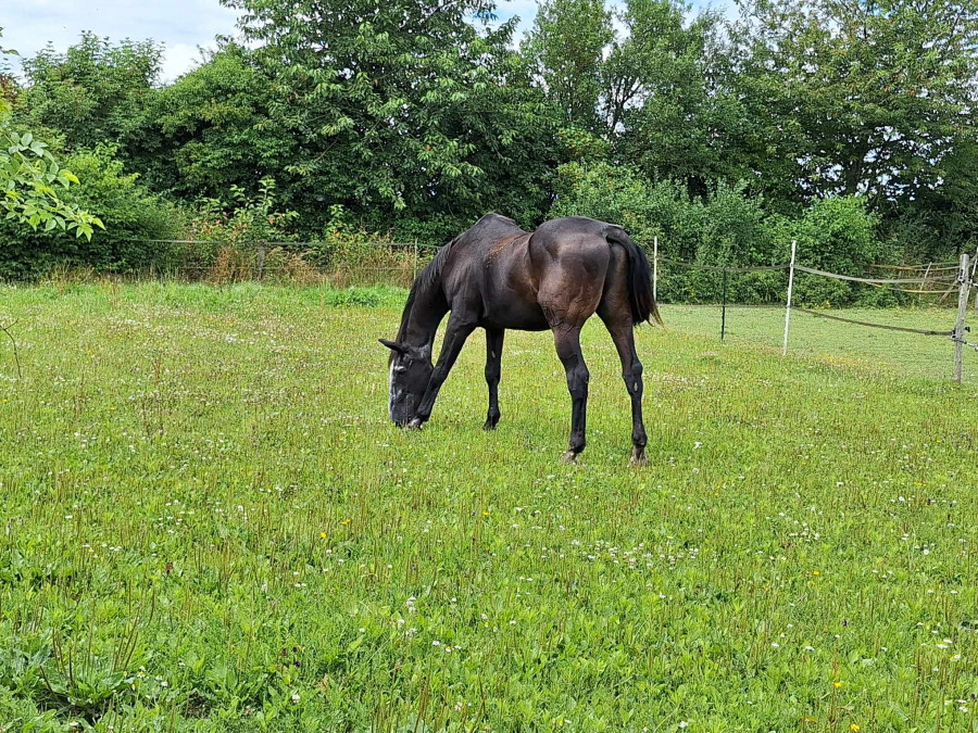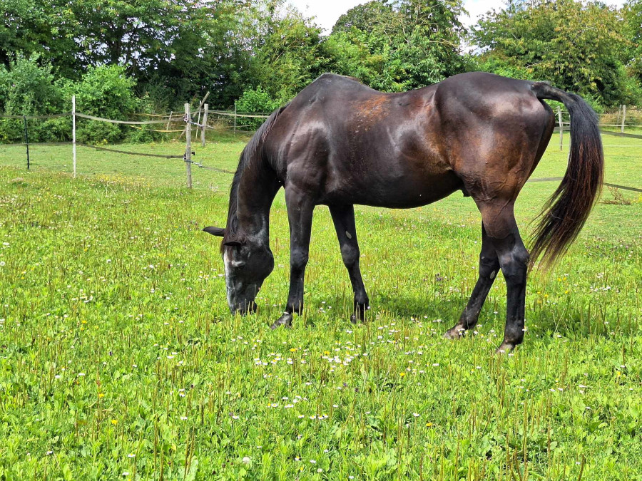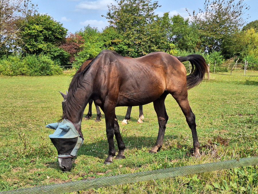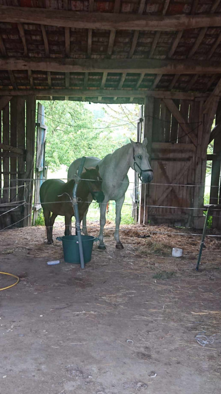 Sinon pour gros Moon tout va bien , une nouvelle copine est arrivé dans leur pâture, au départ elle restait collé a lui ,.du coup l'autre jument était pas trop contente de pas pouvoir aller le voir car elle se faisait chassé, mais deux jours après ça y est elle est allée voir l'autre hongre et il a pu récupérer sa copine.
