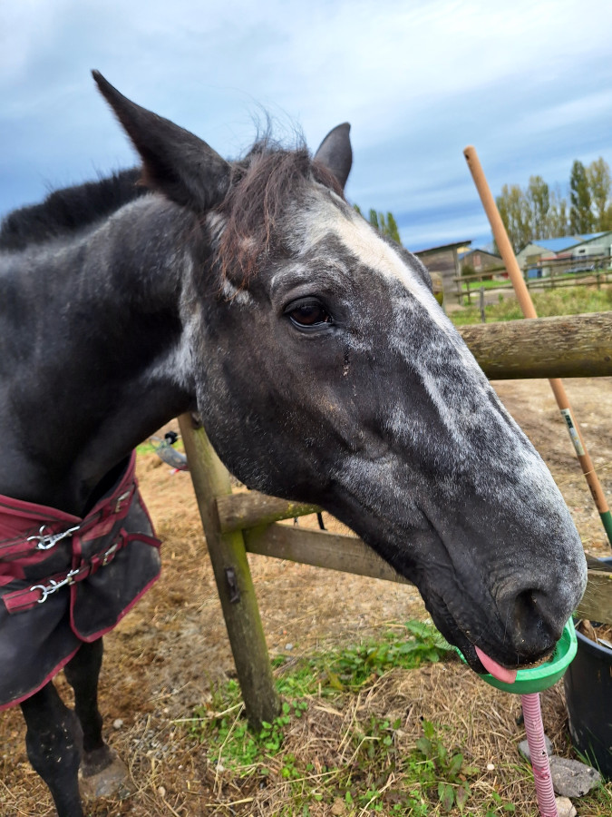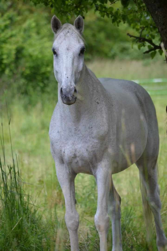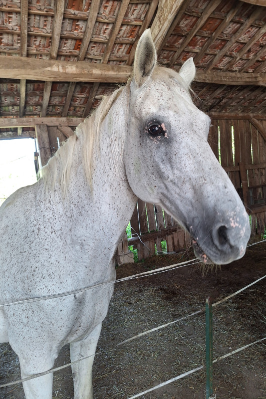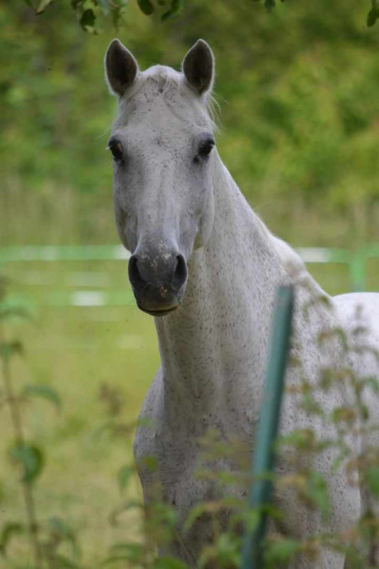 Aujourd'hui je suis aller voir Gucci dans sa nouvelle maison, loulou va très bien , par contre qu'est ce qu'il a pris comme tâches... Lui qui était gris est maintenant truité. Si ça continue ça va faire comme une jument que j'ai connu , elle a fini pas avoir que des tâches on voyait presque plus le gris.
