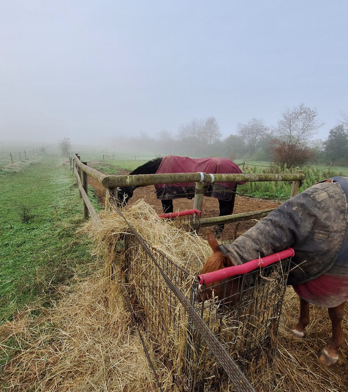 Mais ça le dérange pas d'être tout seul , des fois les trois autres sont dans l'abri et lui est au fond de la pâture.