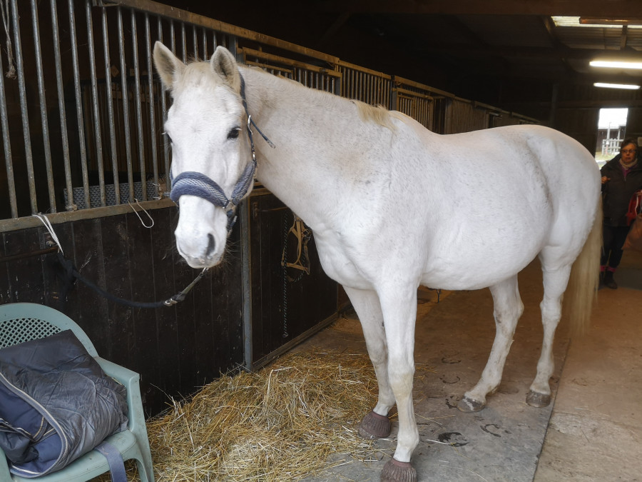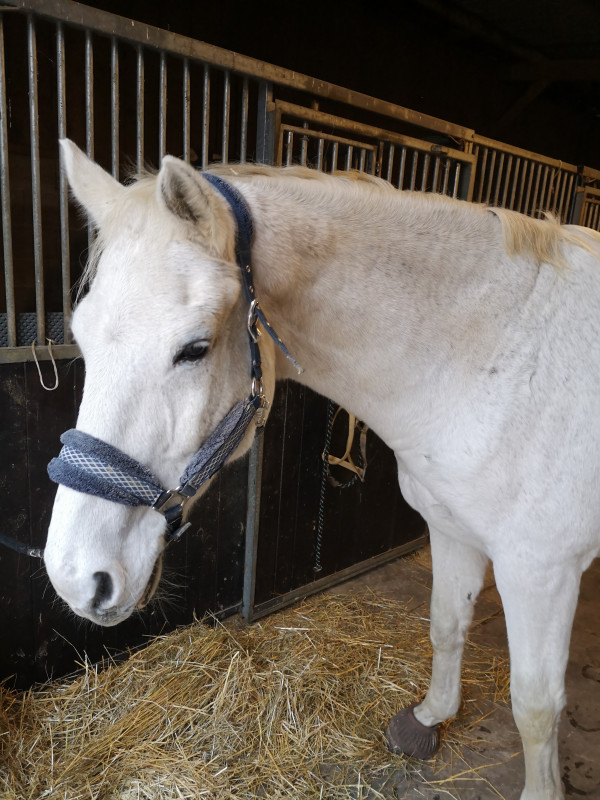 J'ai donc retirer les fers avant mais obligé de garder ses fers arrière à cause de son arthrose au jarret.