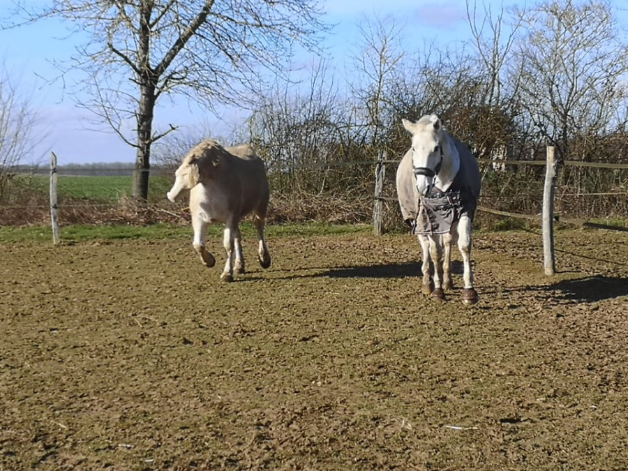 Oui dommage, je ne sais pas ce qu'il s'est passé, quand il est arrivé on les lachait tous les 3 avec la jument de ma mère, et maintenant il se jete dessus toutes dents dehors..