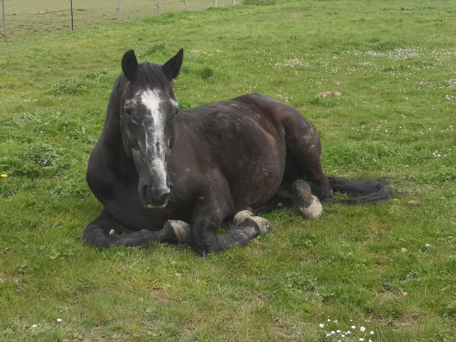 J'ai donc retirer les fers avant mais obligé de garder ses fers arrière à cause de son arthrose au jarret.
