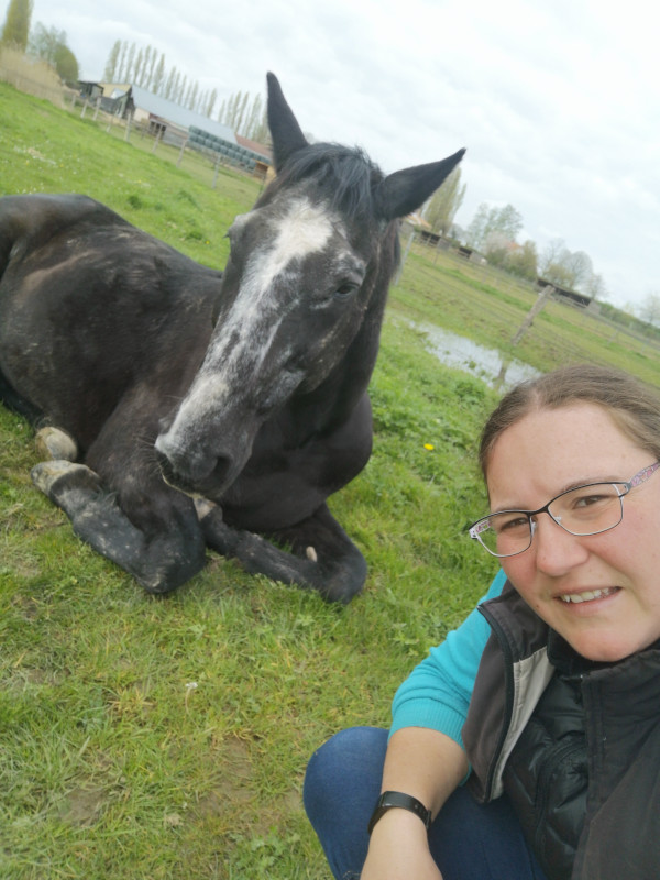 J'y retourne en quittant a 11h et là je vois Moon dans la pâture et Gucci dans l'autre .... Et ils étaient l'un à côté de l'autre comme des couillons... Du coup je récupère Gucci et le remet avec Moon.