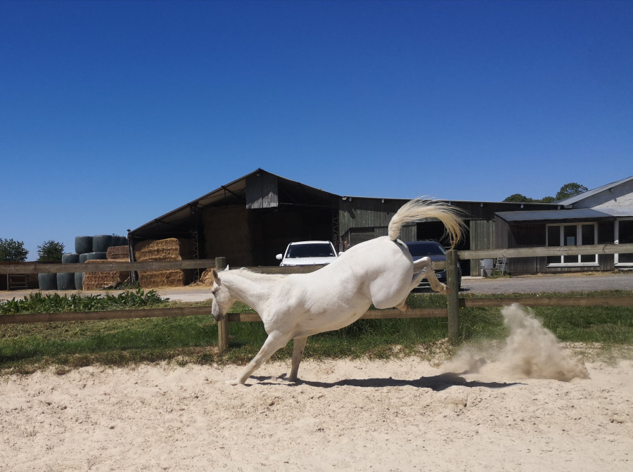 une fois au moment de repasser au trot après un galop, du coup je vous dit pas le beau vol plané de nous 2..