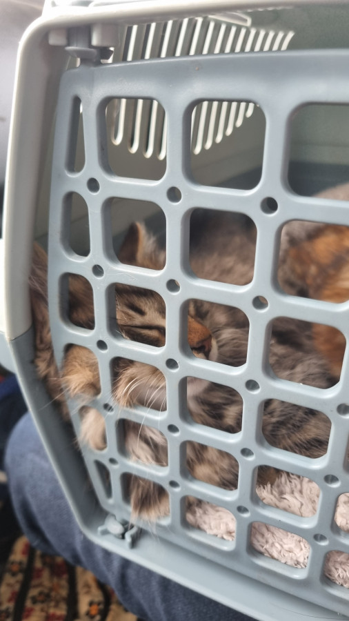 Elle est super marrante, complètement à l'ouest elle passe du coq à l'âne, n'a aucune logique dans ses actions, la voir vivre donne le tournis ! Elle est très, très, très câline et a le ronronnement facile. Une vraie perle : moi qui rêvais depuis toute gamine d'avoir une tricolore à poils longs ... Je suis comblée Elle a fêté ses trois ans depuis peu.