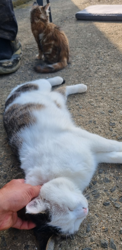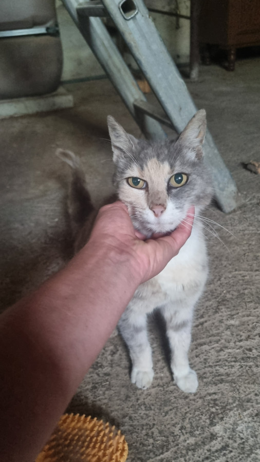Inaya est arrivée la première, j'avais complètement craqué sur la photo de son annonce à la SPA du 77 et j'ai emménagé au plus tôt dans ma ferme dans l'unique but de ne pas la voir filer sous mon nez ! C'est une chatte peu câline, n'aimant que ponctuellement le contact avec les humains et ses congénères. Solitaire et très indépendante, je l'ai retrouvée en haut de la grange le premier jour de sa sortie elle est curieuse mais on ne peut pas dire qu'elle soit "gentille", elle a le coup de griffe facile.
