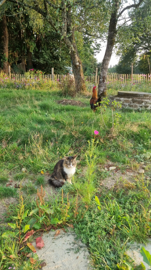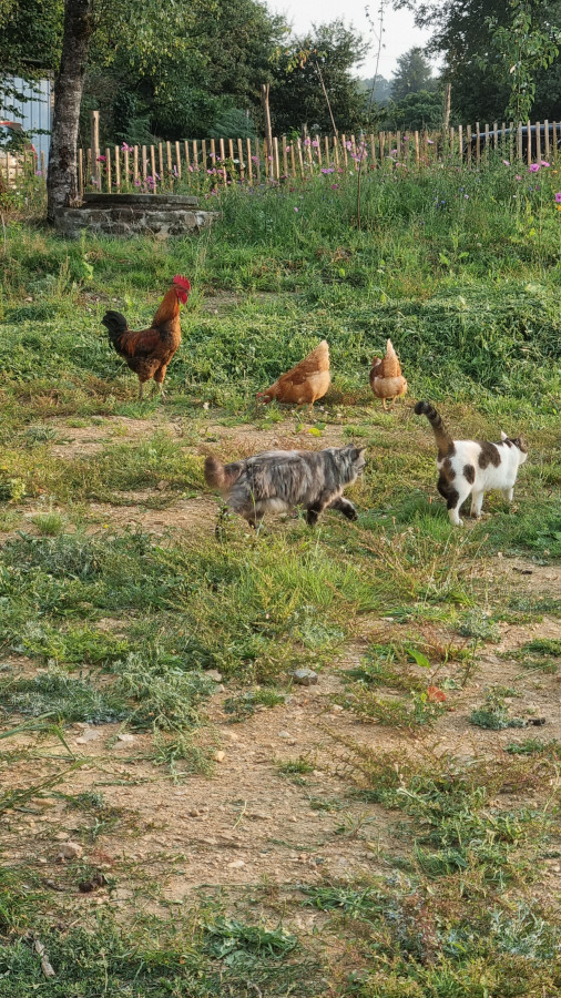 J'adore les voir se rouler dans la poussière, grimper aux arbres ... hier le coq était quasi sur la terrasse, il avait trois chats qui étaient fascinés