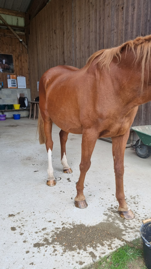 Il avait de la toux à la fin de l'été mais ça s'est calmé avec la pluie. Je lui mets dans sa ration un mash respiratoire + du gel friction sur la gorge, le thorax et ponctuellement au bord des naseaux mais si la toux a disparu, maintenant il a une grosse respiration abdominale. Ça ne me plaît pas du tout