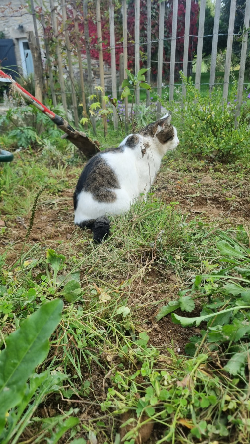 Inaya est arrivée la première, j'avais complètement craqué sur la photo de son annonce à la SPA du 77 et j'ai emménagé au plus tôt dans ma ferme dans l'unique but de ne pas la voir filer sous mon nez ! C'est une chatte peu câline, n'aimant que ponctuellement le contact avec les humains et ses congénères. Solitaire et très indépendante, je l'ai retrouvée en haut de la grange le premier jour de sa sortie elle est curieuse mais on ne peut pas dire qu'elle soit "gentille", elle a le coup de griffe facile.
