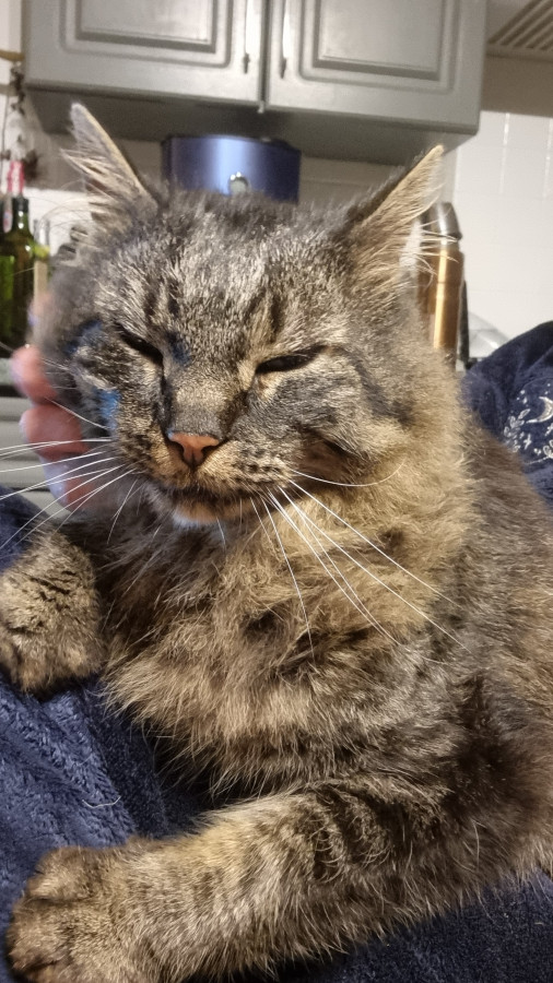 Aku est un chat bizarre : il agit encore comme un chaton à bien des égards, énormément de complaintes, de besoins de câlins, il ne respecte PAS DU TOUT le consentement des autres chats et se prend des baffes tous les jours car ils se jettent sur les autres pour avoir des bisous ... Il est très, très peureux mais ça commence à se calmer, il était temps .... Son point positif ? Il est splendide Il a maintenant quatre ans.
