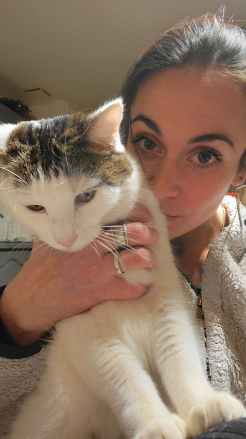 Inaya est arrivée la première, j'avais complètement craqué sur la photo de son annonce à la SPA du 77 et j'ai emménagé au plus tôt dans ma ferme dans l'unique but de ne pas la voir filer sous mon nez ! C'est une chatte peu câline, n'aimant que ponctuellement le contact avec les humains et ses congénères. Solitaire et très indépendante, je l'ai retrouvée en haut de la grange le premier jour de sa sortie elle est curieuse mais on ne peut pas dire qu'elle soit "gentille", elle a le coup de griffe facile.