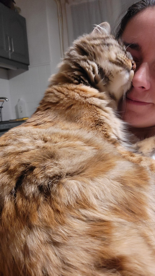 Hyô est mon gros chat gentil, un amour très câlin qui a besoin de son humaine au maximum. Il vient de Guadeloupe, rapatriée par la SPA (la même qu'Inaya) à ses 11 mois dans un état de grande maigreur ... Il a d'ailleurs pas mal de dents en moins alors qu'il a 5 ans et a les pattes un peu tordues, à cause des carences.