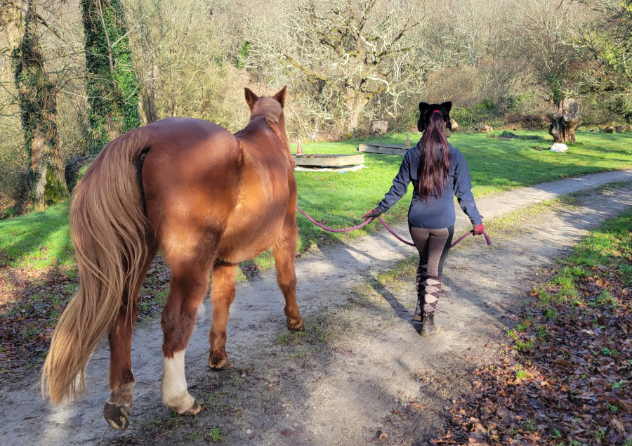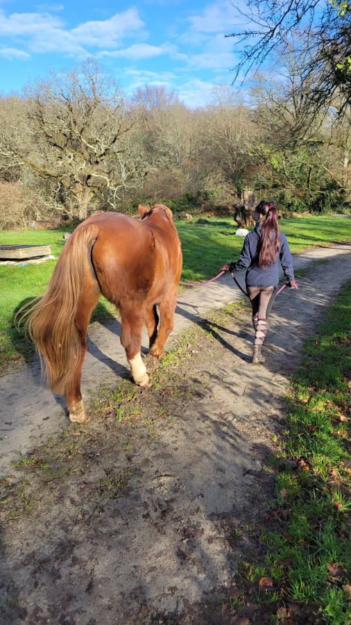 1km seulement mais il était assez calme :) la dernière fois on avait arrêté au bout de 10m, j'avais un dragon au bout de la longe ... là il a fait une fois une micro galopade + saut de mouton, ça reste Lorida même s'il a bientôt 27 ans, mais très gérable !