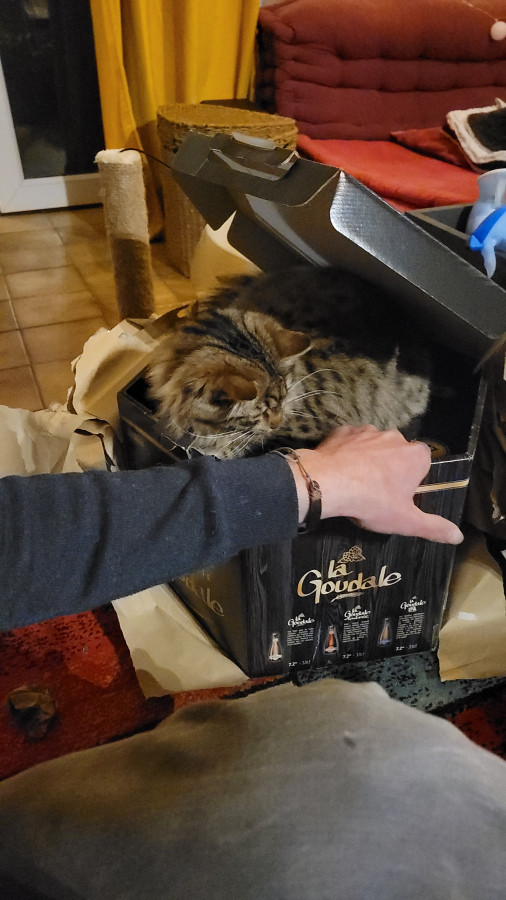 Deux nuits qu'il passe dans la maison et aucune bêtise - enfin il a fait pipi à côté de la litière mais c'est qu'il se met mal dedans, c'est tout.