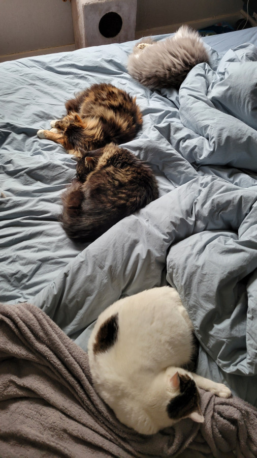 Au lieu de polluer trois posts pour parler des chats qui vivent avec moi, j'ouvre celui-ci qui sera consacré à leurs vies, leurs interactions, mes questionnements etc.