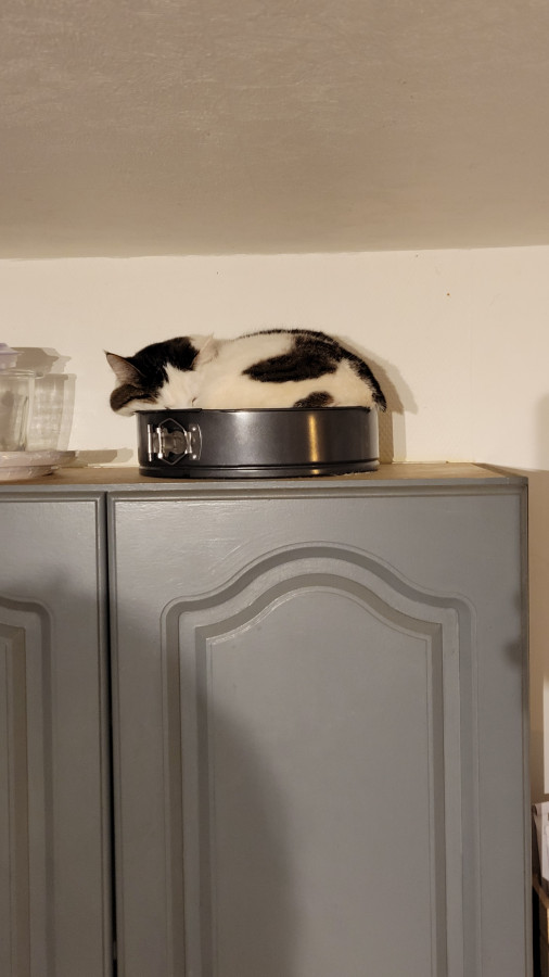 Aku est un chat bizarre : il agit encore comme un chaton à bien des égards, énormément de complaintes, de besoins de câlins, il ne respecte PAS DU TOUT le consentement des autres chats et se prend des baffes tous les jours car ils se jettent sur les autres pour avoir des bisous ... Il est très, très peureux mais ça commence à se calmer, il était temps .... Son point positif ? Il est splendide Il a maintenant quatre ans.