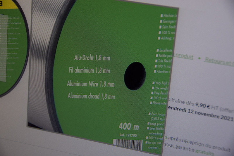 Dans les séparations intermédiaires je mets le fil le plus simple (0.16 m d'acier ) photo a la suite pour illustrer