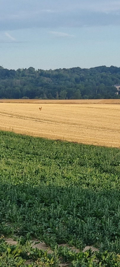 5.5 kms tout au pas la moitié parcourue à pieds (moissonneuse et bennes en plein milieu des chemins moissons obligent, et trop trop de cailloux ce qui ne plaisait pas à mon gros).