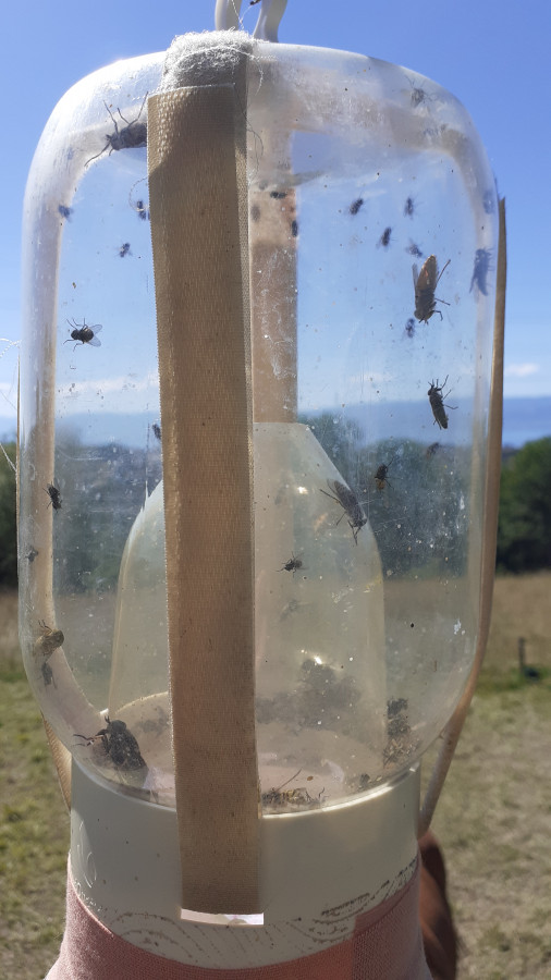 Le piege a taons est à l'ombre alors je pense qu'il y aura un peu moins de taons de piegé mais il y en a une vingtaine en 2 jours puis des petites mouches aussi...