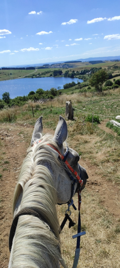 Nous sommes parties à deux, tester un circuit mis en ligne par une association qui organise des randonnées équestres. C'était une boucle de 20 km, qu'on a raccourci un peu, car on connait bien la partie qui fait le tour du lac. Donc 15 km que de découverte ! Vainqueur a été en tête tout le long, car le copain avec qui on était est un peu plus émotif. Il a été génialissime, un parfait cheval de tête (mais je ne le découvre pas d'aujourd'hui!), juste une petite peur avec un chien qui a sauté sur un grillage. Par contre, il a été juste insupportable à l'attache avant et après, un démon !!