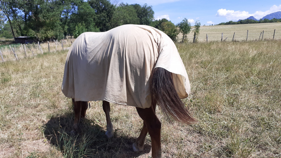 Pendant que je faisais un tour au fond du parc ,Mia aussi s'est roulé avec le drap , je l'ai remis apres car c'etait encore "humide" (mais un peu sale )