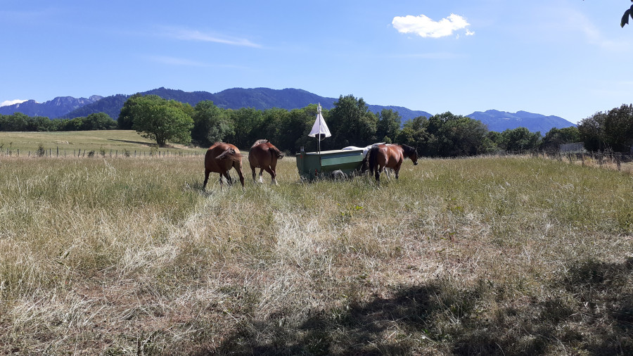 Il y a un noyer pour l'ombre . Mia mangeait deja les noix tombés à cause de la sécheresse
