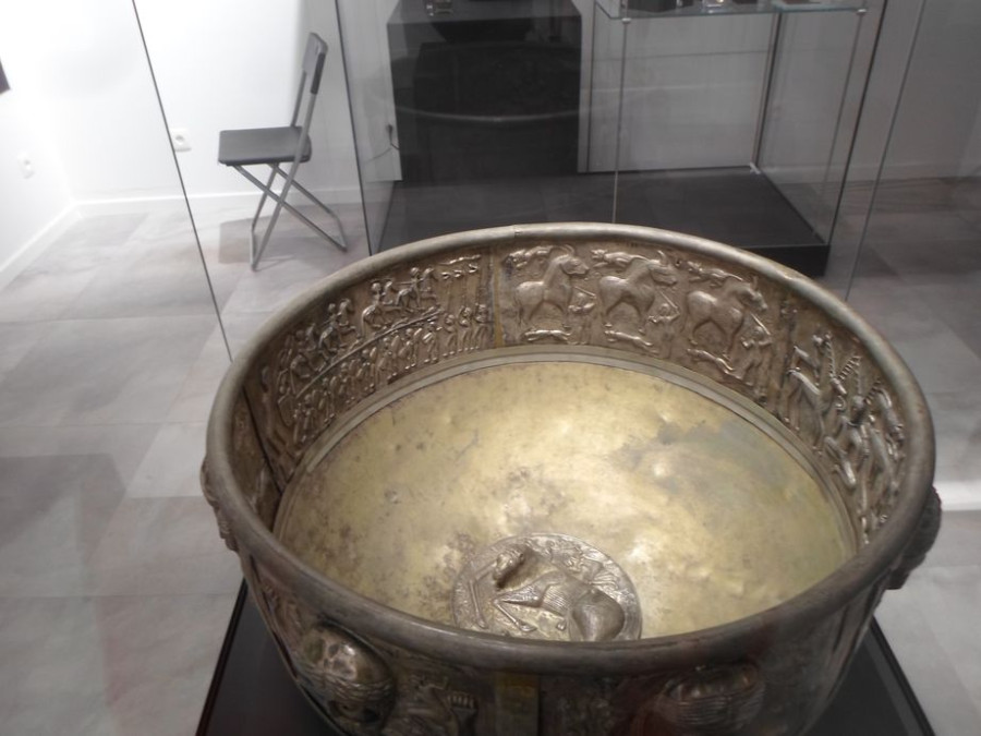 le Chaudron de Gundestrup (l'original cette fois) avec les cavaliers celtes et un cheval couché au fond