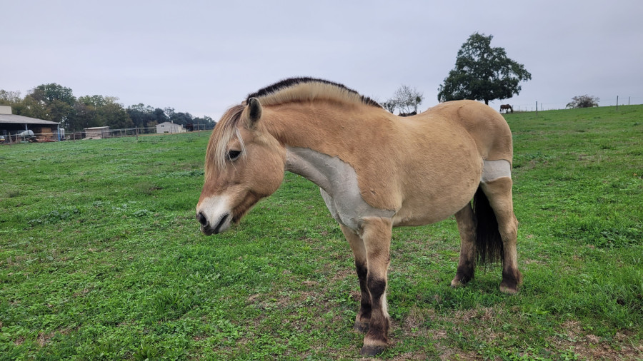 Donc pour la première fois de ma vie de propriétaire... j'ai tondu mon cheval ! Bon, seulement une petite bande sous l'encolure et les côtés à moitié et puis une bande sur les cuisses et entre les cuisses sous la queue aussi.