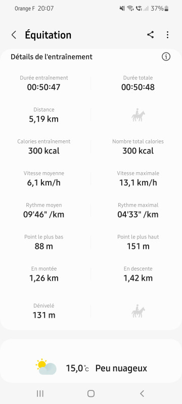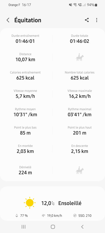 Time a été top juste à un moment au galop elle s'est excitée et montée en pression toute seule. Je l'ai calme en la faisant trotter énergiquement en montée.