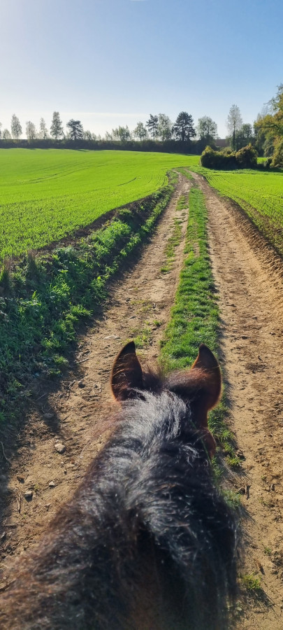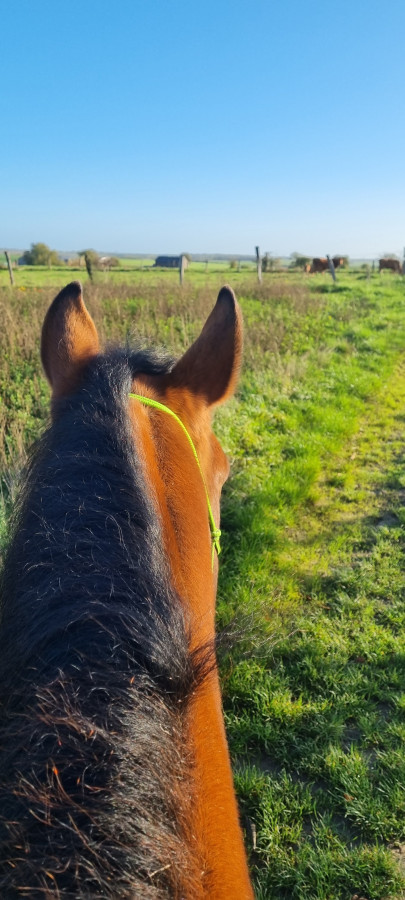Et aujourd'hui, première sortie montée depuis l'accident. Devant une grande partie de la balade, il a été génial, ça me met vraiment du baume au coeur après ce qu'il s'est passé, je retrouve mon cheval