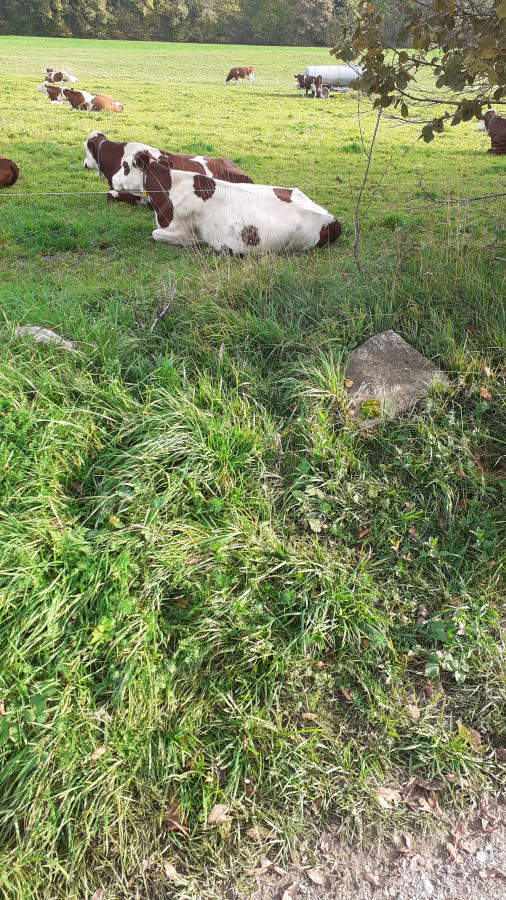 Puis elle s'est arrêtée plusieurs fois à côté d'un parc à vaches ? ?, ça c'était rassurant mais les bois non,ça peut cacher toute sorte de choses