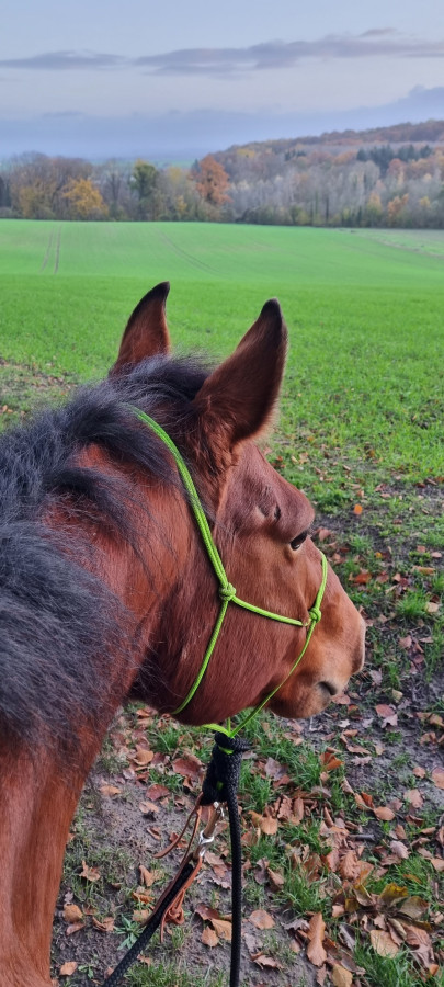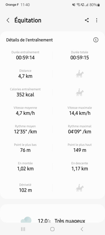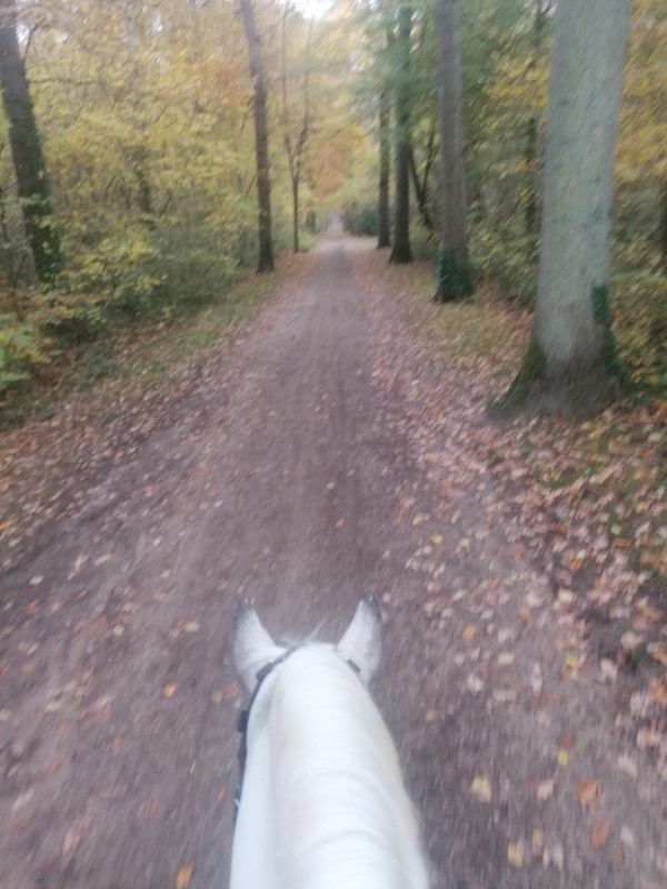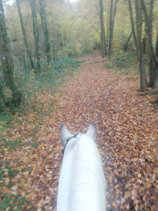 Puis j'ai fait demi-tour et là il a enclenché la fusée ! Il trottinait, piaffait (si j'avais su je lui aurais mis la baguette aux fesses pour le stimuler à l'aller ! je suis trop bonne "le pauvre il fait froid, humide blabla) ! tu parles !