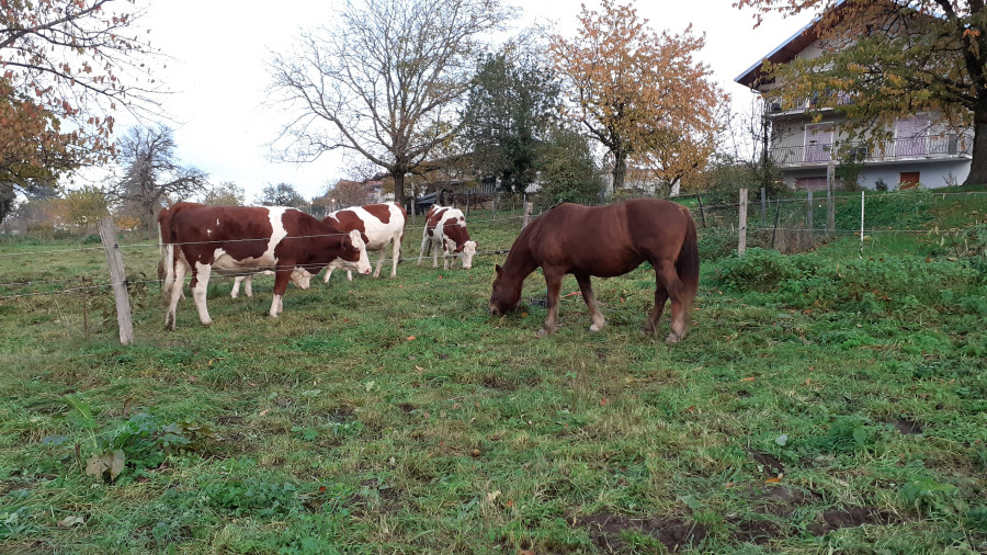 puis comme j'avais pas envie de rentrer au soir/ sombre à cause du pneu, j'ai juste fait un peu plus de 6 km, on a longé une petite route de campagne, les veaux noirs étaient méga énervés, Lotus complètement ramolli, il ne se foulait as la rate !