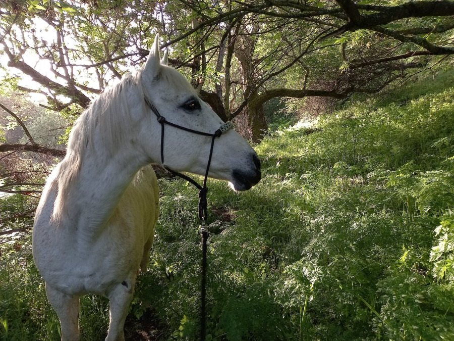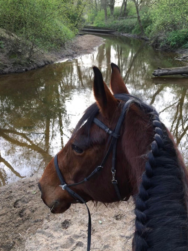 On était 3, que des chevaux cools et tour tranquille niveau allures, donc j'ai sorti le side-pull. Première fois depuis notre arrivée dans cette écurie qu'on sort en side.
