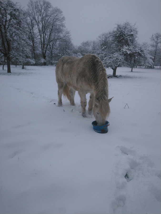 Endurance de dimanche annulée a cause de la neige. Chez moi la neige ne tient pas mais dans le jura où est l'endurance ils ont ente 15 et 20 cm. Non praticable pour une course d'endurance. Time tousse toujours, bien moins que dimanche dernier, son nez ne coule plus, je continue le sirop et elle est couverte.