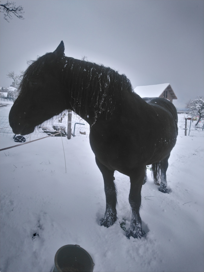 Kara 24 ans et sans couverture est en pleine forme! C'est robuste un camargue, elle ne se met même pas sous l'abri alors que Time y est souvent même en étant couverte!