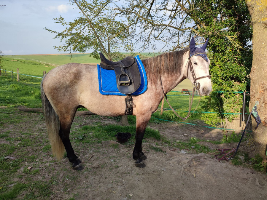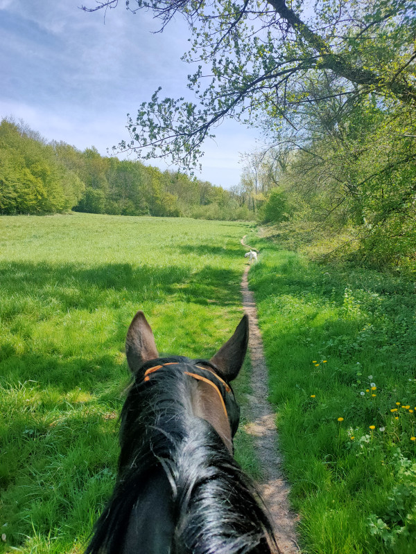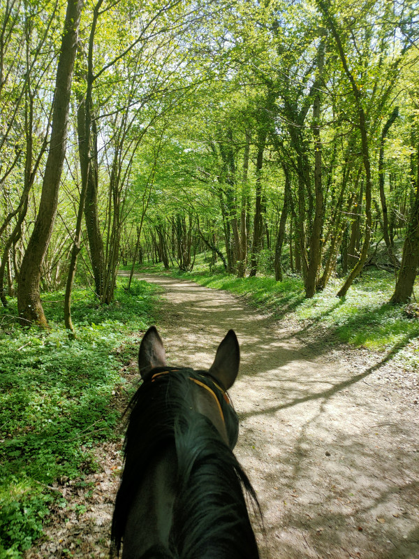 4km avec Urielle aujourd'hui, elle a été top ! Aucun stress pendant la balade et on a fait notre premier galop seules dans un champs, avec le tapis de monte