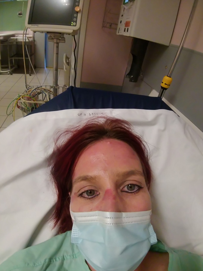 Coucou de l'hosto.... Ce matin Bertille a trébuché au galop dans un trou je suis tombée sur la tête puis elle m'est tombée dessus.