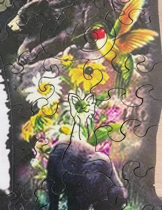 ladygodiva j’ai fait un puzzle de 500 pièces sans le modèle (auberge de jeunesse, surprise en ouvrant la boîte ), c’était assez intéressant ! Tu regardes les pièces d’une manière « d’ensemble » pour essayer de repérer un peu à quoi ça ressemble. Dans mon cas c’était des personnages, des noms et des phrases en tout petit de différentes couleurs, donc assez facile (et 500 pièces c’est pas gros). Au final c’était un puzzle qui présentait des femmes scientifiques importantes
