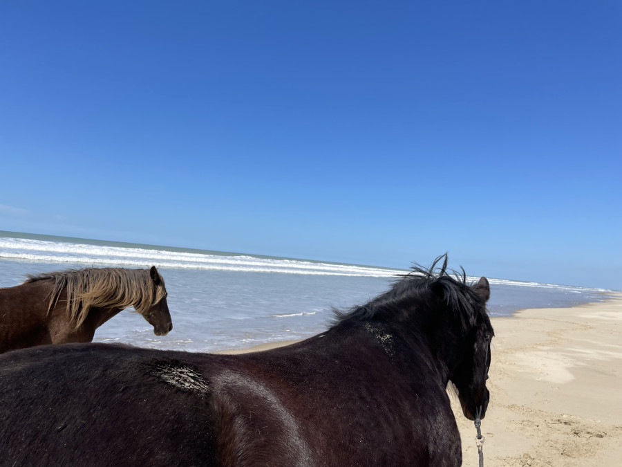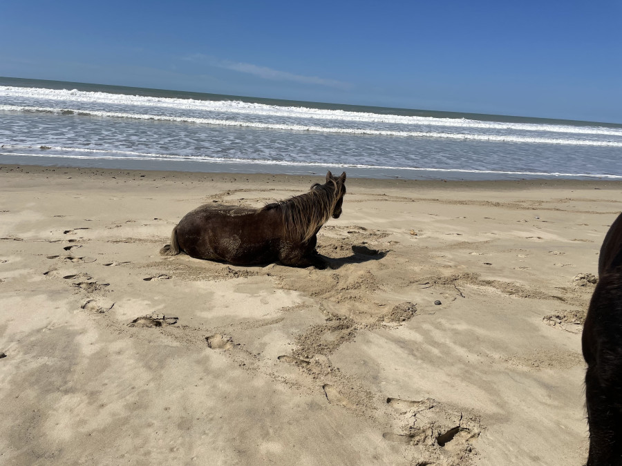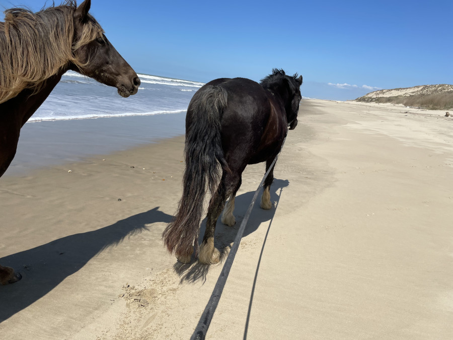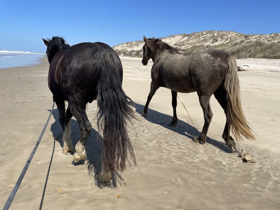 Pour la première fois depuis des mois, nous avons amené les chevaux sur la plage avec papa.