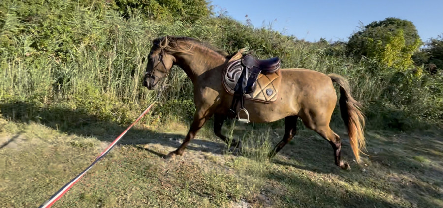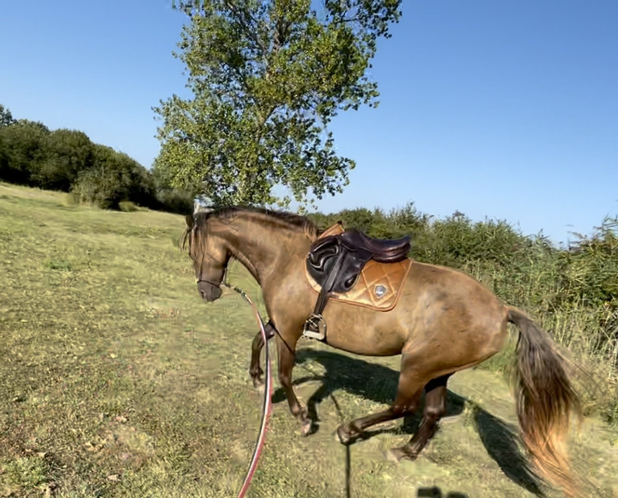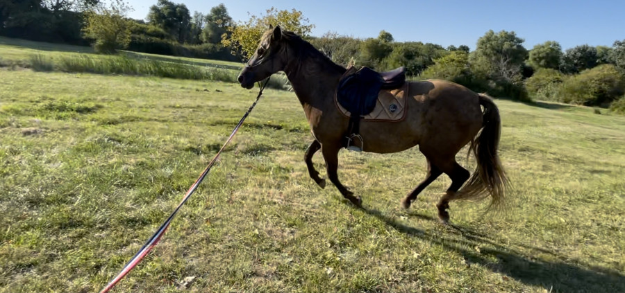 Diriger son cheval depuis l'arrière à la longe c'est quand même le pied pour les chemins sinueux! Et surtout quand on gère plusieurs chevaux en même temps!