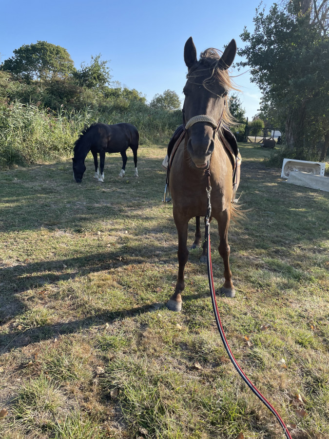 Mais au lieu de continuer notre ébauche de travail monté, je me sens plus le coeur à l'extérieur et à la balade! Ce temps de printemps -presque d'été- me donne des envies d'évasion, et j'ai l'impression qu'à mes chevaux aussi.