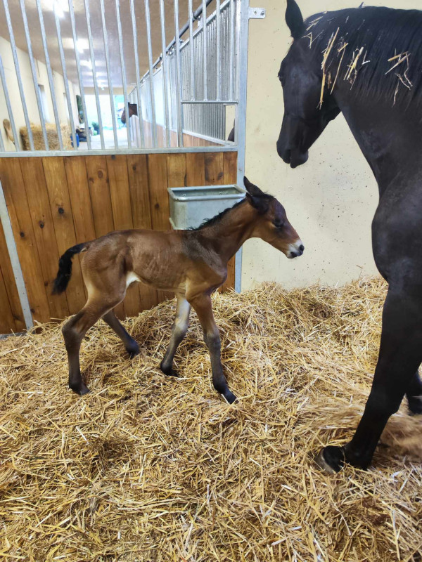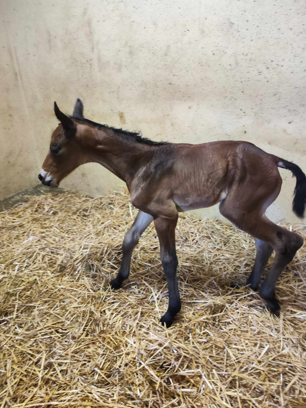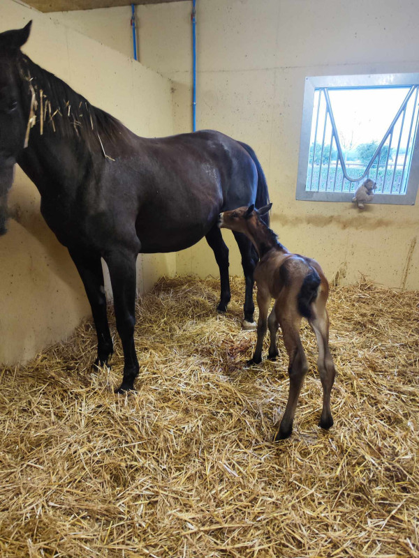 Sinon mon ancienne jument sf que j'ai vendue pleine a pouliné. Une jolie petite pouliche bai par Silver deux :