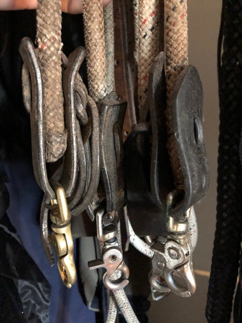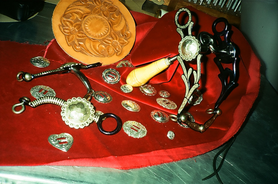 Par contre, bien que Blevins ais commencé la production en 1949 au TEXAS( Encore la WW2, Blevins était officier d'ailleurs,d’où les métaux, et oui encore), Ces boucles quick change la, avec ces marquages encore identiques de nos jours, datent probablement des années 8O. De plus les boucles Blevins ne se sont démocratisées que assez tard a cause des royalties. Il était encore très courant mi 90 de voir des All-Ray ou autre systèmes( Moi j'ai même "subit" les laçages, quelle galère...) La forme des fenders typiquement roper des années 80-début 90. Mais peut être en remplacement, comme le mouton, les saddles strings, étriers( le tie strap est monté a l'envers).