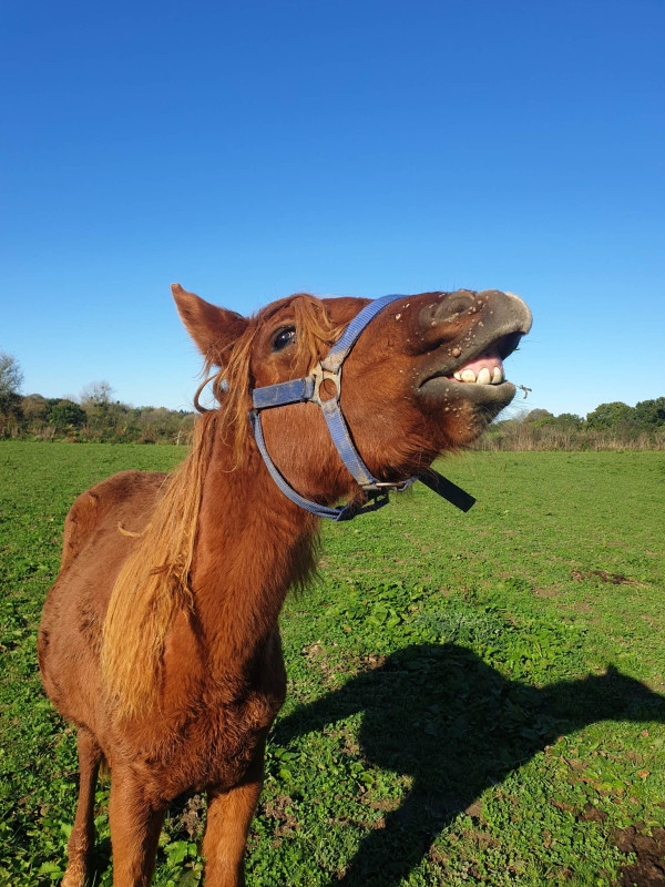 Le 2 Juillet, la dentiste est passée pour vérifier la dentition (on remarquait qu'elle mâchait bruyamment et qu'elle mangeait très lentement) : bilan, elle a déjà pas mal de surdents liées à son alimentation poulain (gardée principalement au box, elle mangeait quasi uniquement du granulé lacté + un peu de foin mais très peu d'herbe). Pas d'intervention possible vu son âge mais il faudra la revoir dès 2 ans.
