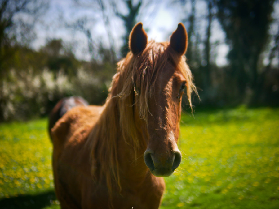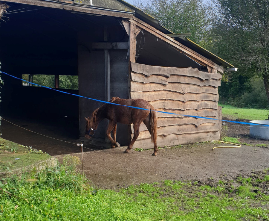 J'avais prévu de l'introduire dans mon groupe de chevaux mais ça ne s'est pas passé comme prévu : elle préfère la compagnie des humains à celles des chevaux donc elle passait les clôtures : elle est donc en pension pour le moment (histoire de s'éviter le stress permanent de chevaux en constante divagation...).