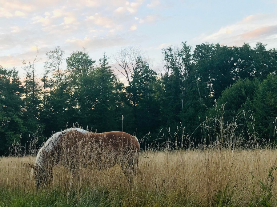 là oui il y a du "gaspillage" mais n'ayant rien d'autre à manger les chevaux se résignent à consommer les herbes montées. Et il nous a semblé que les tiges jaunes et sèches font un peu d' "ombre" et préservent un peu la base des herbes, comme si ça "temporisait" la chaleur pour préserver la repousse.